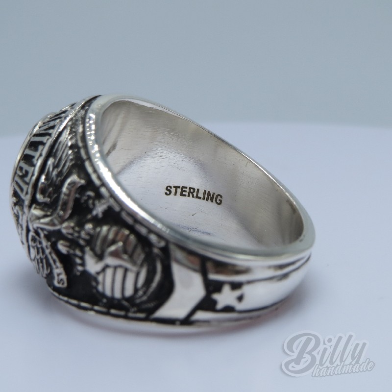- Brand new, expertly handcrafted in the USA with top-quality sterling silver. The ring won't turn your fingers green, and it’s engraved with "sterling" inside. Add a personal engraving (first or last name) for an extra $10.